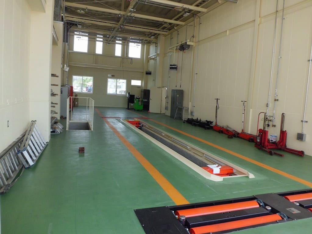 連節バス対応の長い整備場や